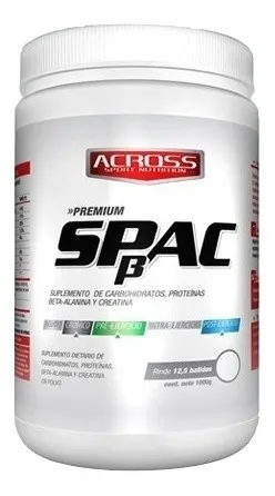 SUPLEMENTO DEPORTIVO ACROSS SPBAC (PROTEÍNAS, BETA-ALANINA y CREATINA) – SABORES FRUTILLA, VAINILLA, CHOCOLATE – CONTENIDO I KG – CONSULTAR SABORES DISPONIBLES.