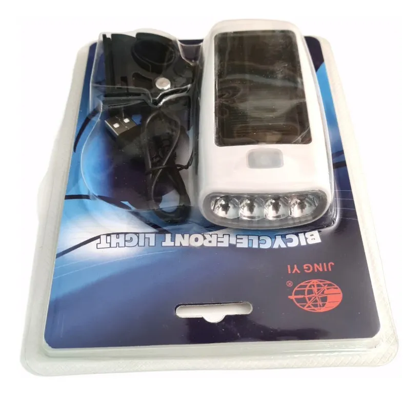 Luz Delantera Blanca Bicicleta Recargable Usb Y Solar 4 Led JING YI