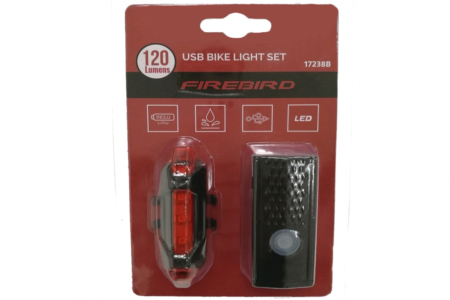 SET DE LUCES DELANTERA Y TRASERA 120 LUMENS - RECARGABLE VIA USB